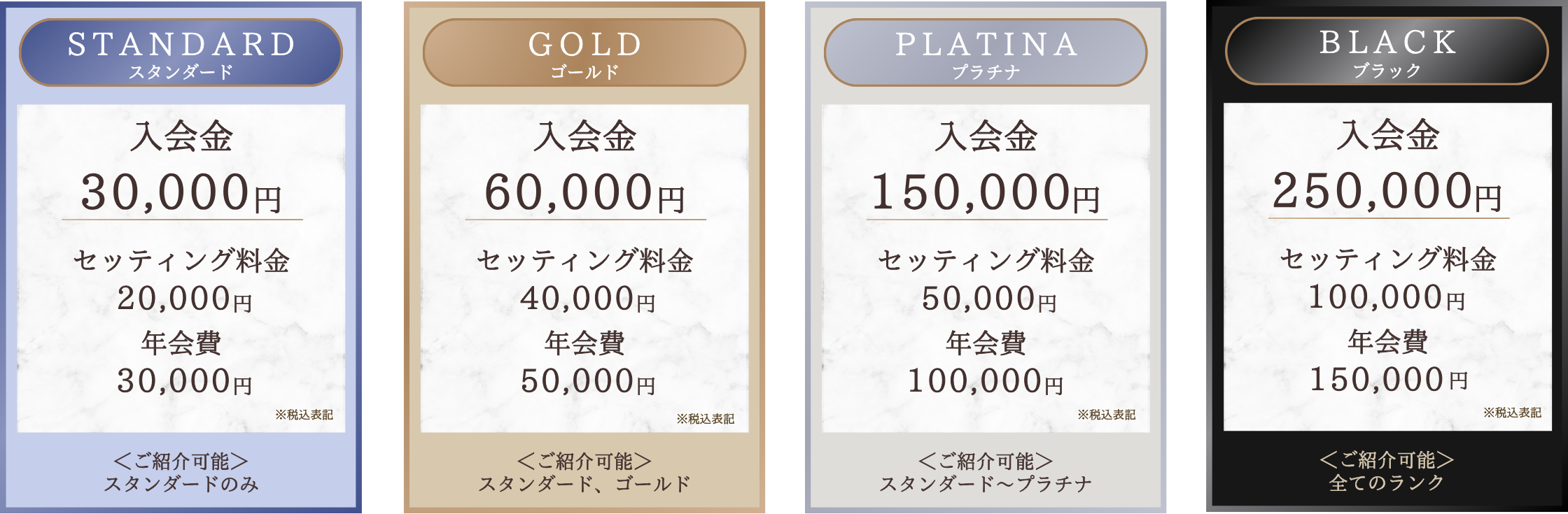 プラチナ会員様のセッティング料金+手数料3万円をお支払いいただくことで プラチナランクの女性とのセッティング可能。