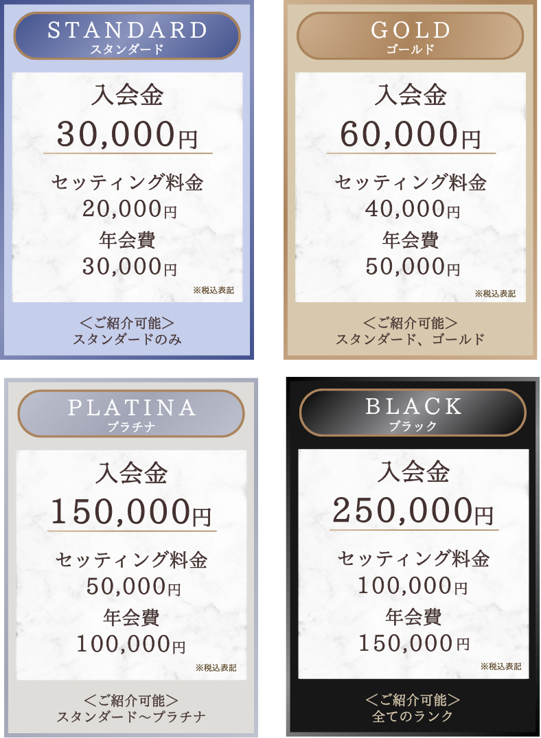 ブラック会員様のセッティング料金+手数料5万円をお支払いいただくことで ブラックランクの女性とのセッティング可能。