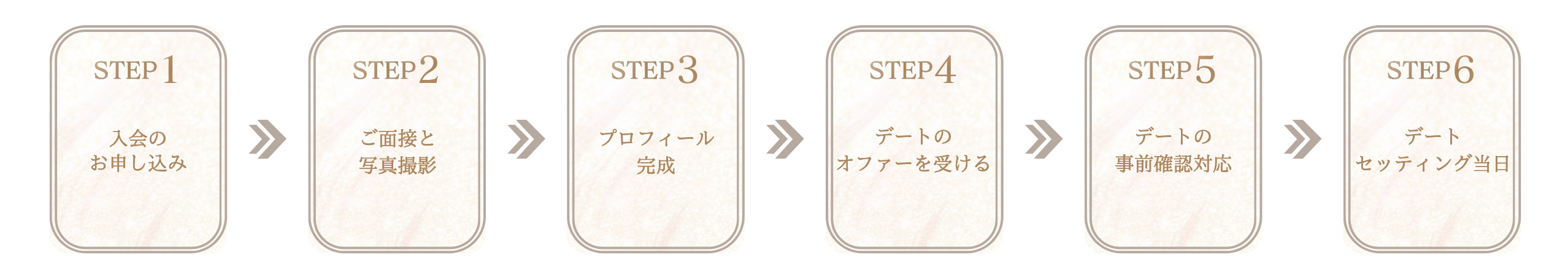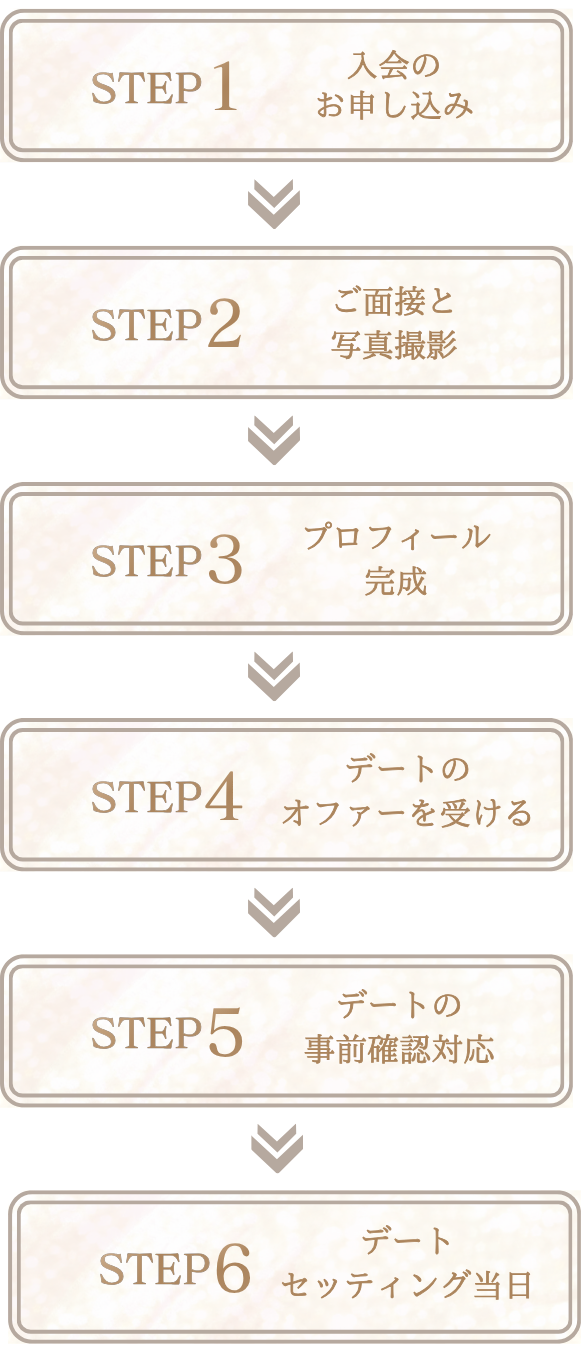 ご入会の登録から男性とのデートに至るまでの行程を分かり易くご説明致します。